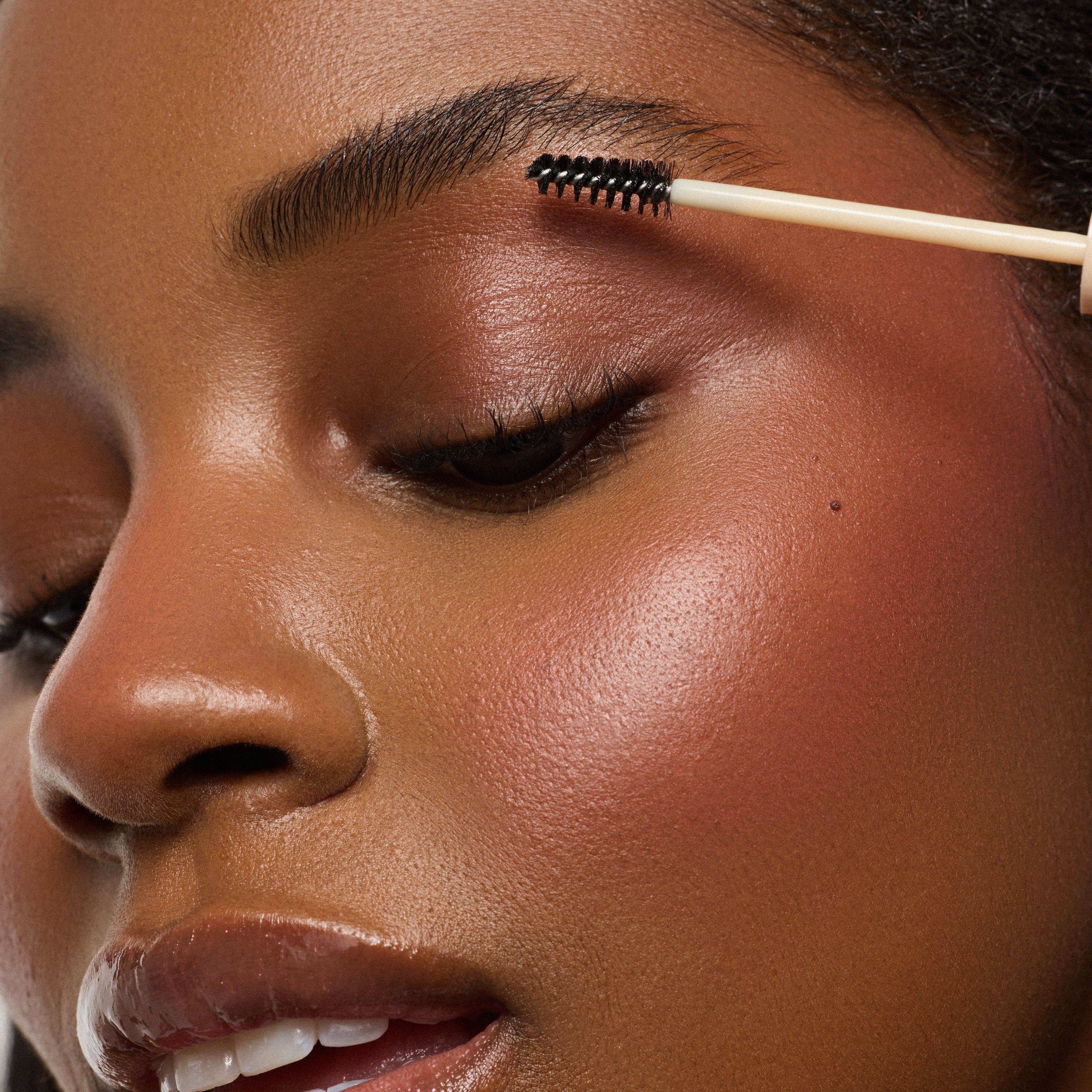 Apply clear gel on the brows using short upward strokes following the direction of hair growth